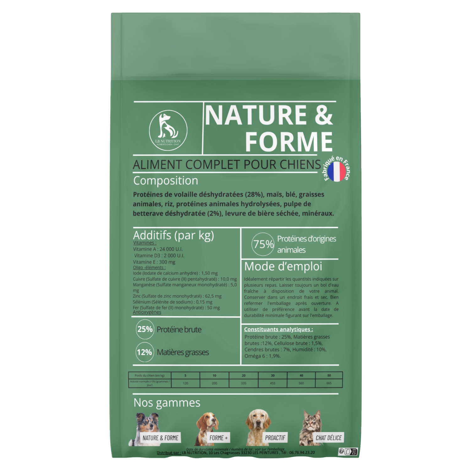 Cette formule française est conseillée pour les chiens qui ont une activité soutenue. Mais elle convient également aux chiens qui ont besoins de reprendre du poids, aux femelles allaitantes, aux chiens de travail ou chiens de compétition.