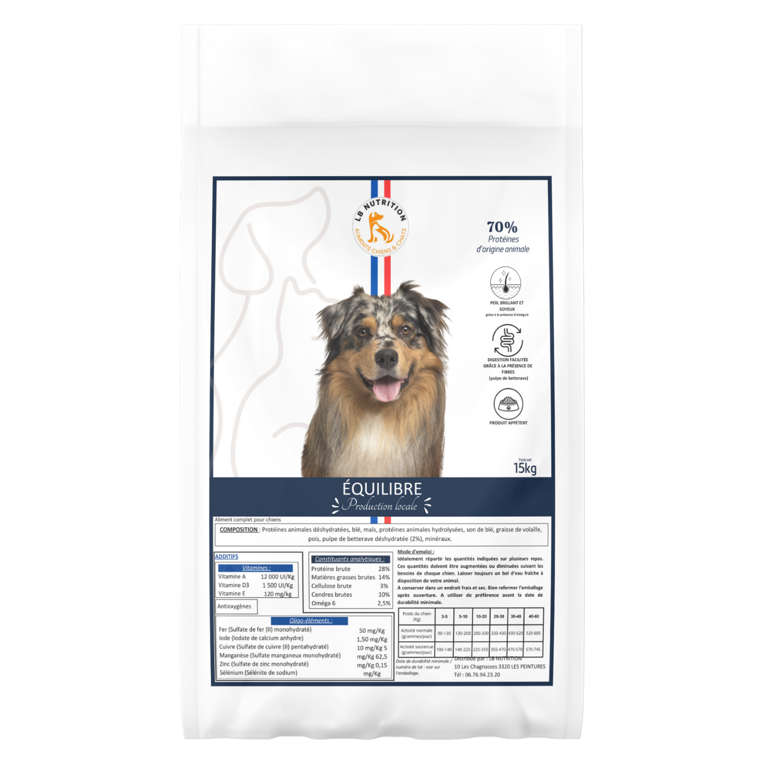 Cette formule de fabrication française équilibrée assure à votre animal l’énergie dont il a besoin. Ces croquettes particulièrement appétente, conviendront parfaitement aux chiens adultes, de moyennes ou grandes tailles, avec une activité intense.