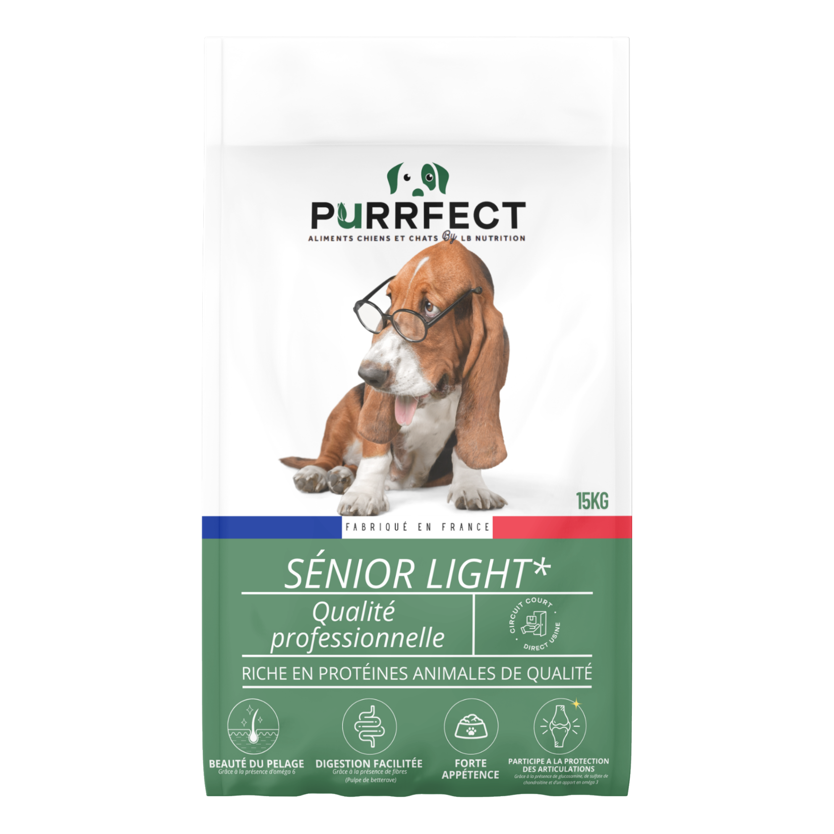 Une recette allégée et savoureuse, enrichie en riz, huile de poisson et chondroprotecteurs, pour préserver la vitalité et la mobilité des chiens matures ou en surpoids.